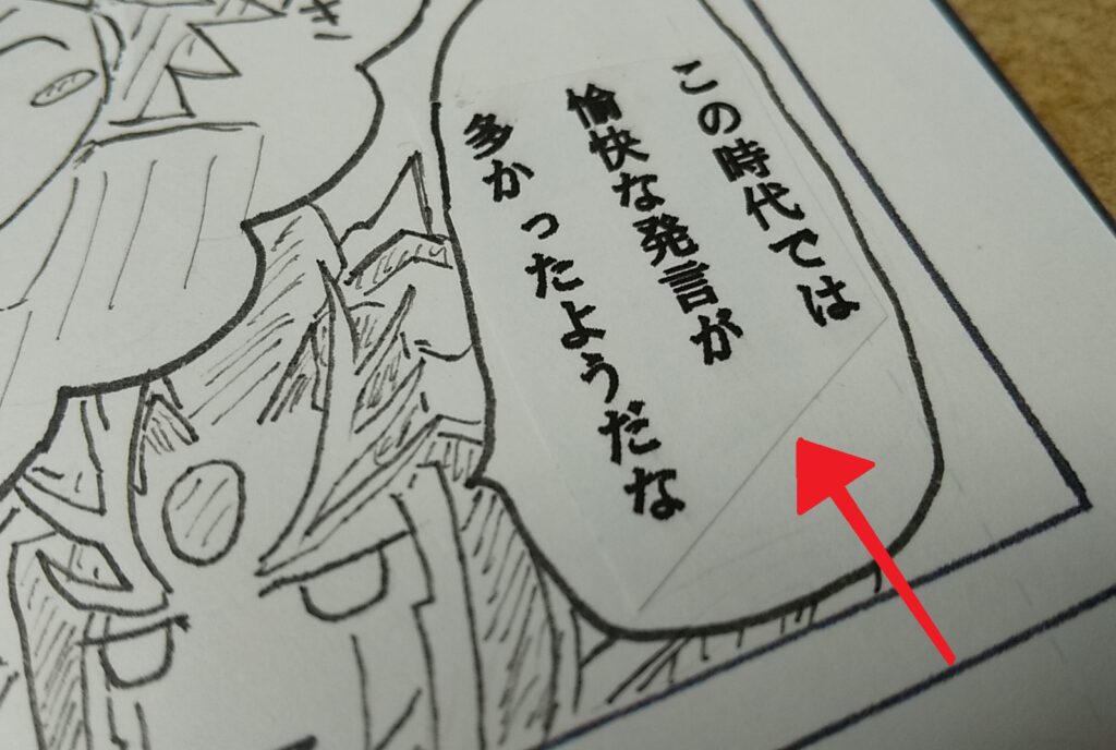 ↑の画像で、セリフを印刷した紙を切り貼りしているのがわかりますでしょうか。書き文字でのセリフ表記に比べて圧倒的に見映えやよいです。フォントサイズを調整しながら、何枚も印刷し直した記憶があります。