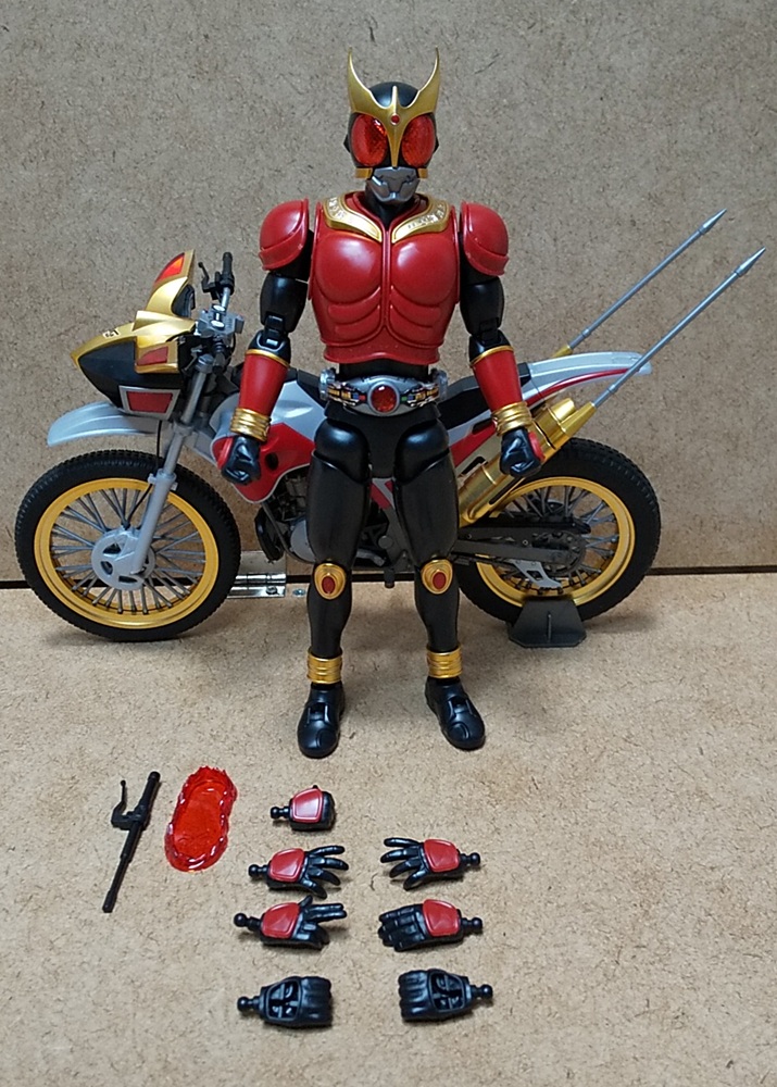 クウガ本人とバイクの2キットを組み立てると、↑の画像のような内容物になります。写っていないものとして、クウガ用のスタンドもあります。