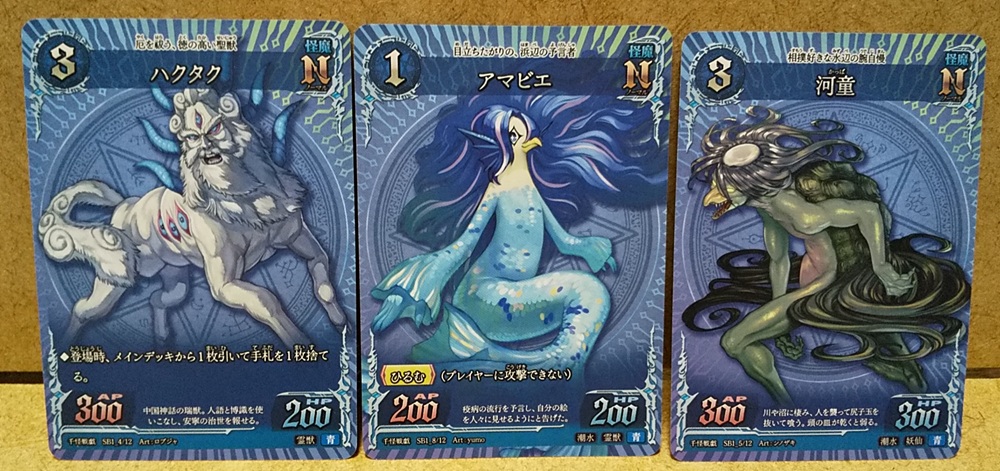 コロナ禍に知名度が上がったアマビエや、日本人の多くが知っている知名度上位層の河童など、馴染み深い妖怪がカードになっています。ちなみに。わたしはハクタクを「東方永夜抄」で知りました。