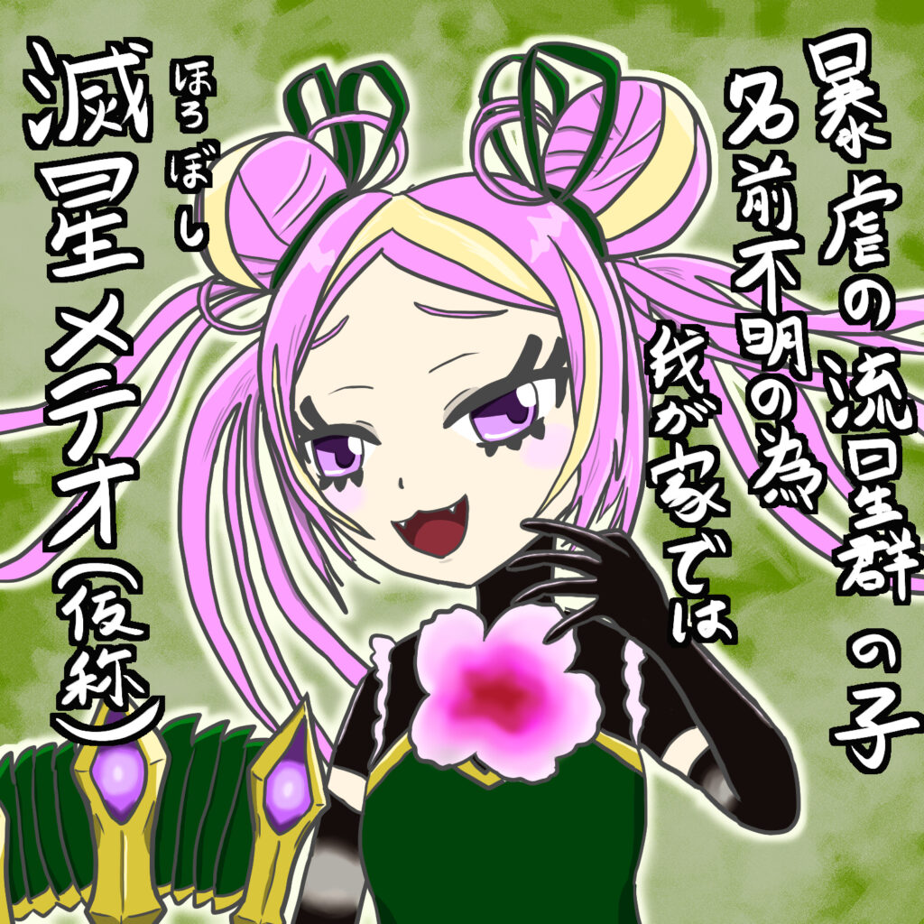 かわいいけれども名前がないというのは不便です。かといって、カード名からとって暴虐ちゃんというのも何だかしっくりきません。その為、我が家では滅星メテオと仮称することになりました。Vtuberみたいな名付け方。